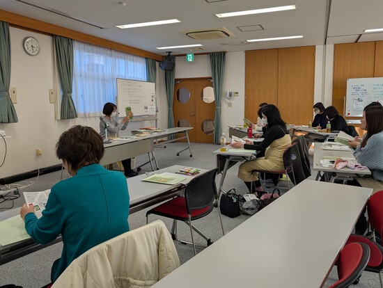 午後は「図書館司書から学ぶ絵本の読み聞かせ」。浜松市立中央図書館の司書の方から、読み聞かせの際に注意することや選書のポイントを教えていただき、さらにおすすめ絵本の紹介もありました。資料として、おでかけ絵本講座受講者用に作成された資料や絵本リストも配布していただくことができました。アンケートでは、「預かり時間は短いけれど、子どもに素敵な絵本体験を提供したい」「すぐに図書館に本を借りに行きたい」「子どもの成長にとても大切だとわかった」などの声が寄せられました。室内で子どもと過ごす際には、おねがい会員にお気に入りの本を持ってきてもらったり、自宅や図書館の絵本を活用したりしながら、ぜひ読み聞かせをしてみてください。